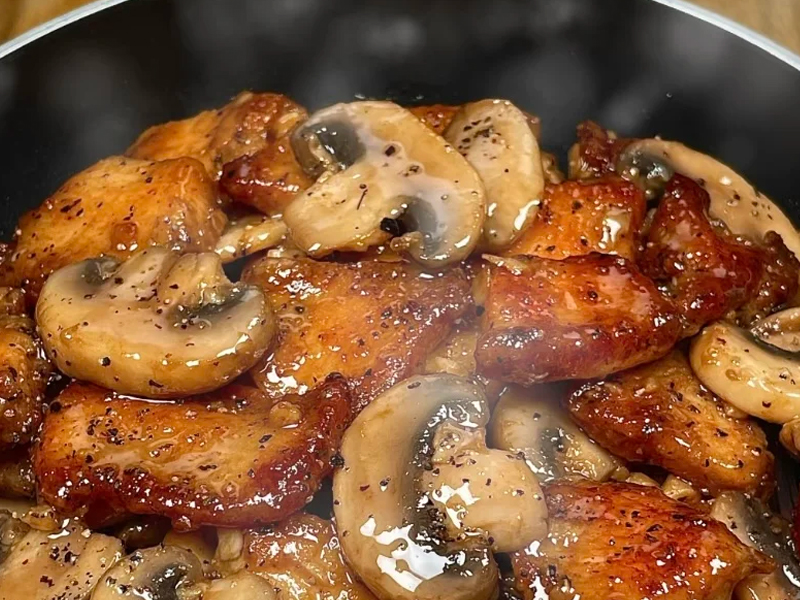 黑椒口蘑炒雞胸肉,香氣四溢超美味